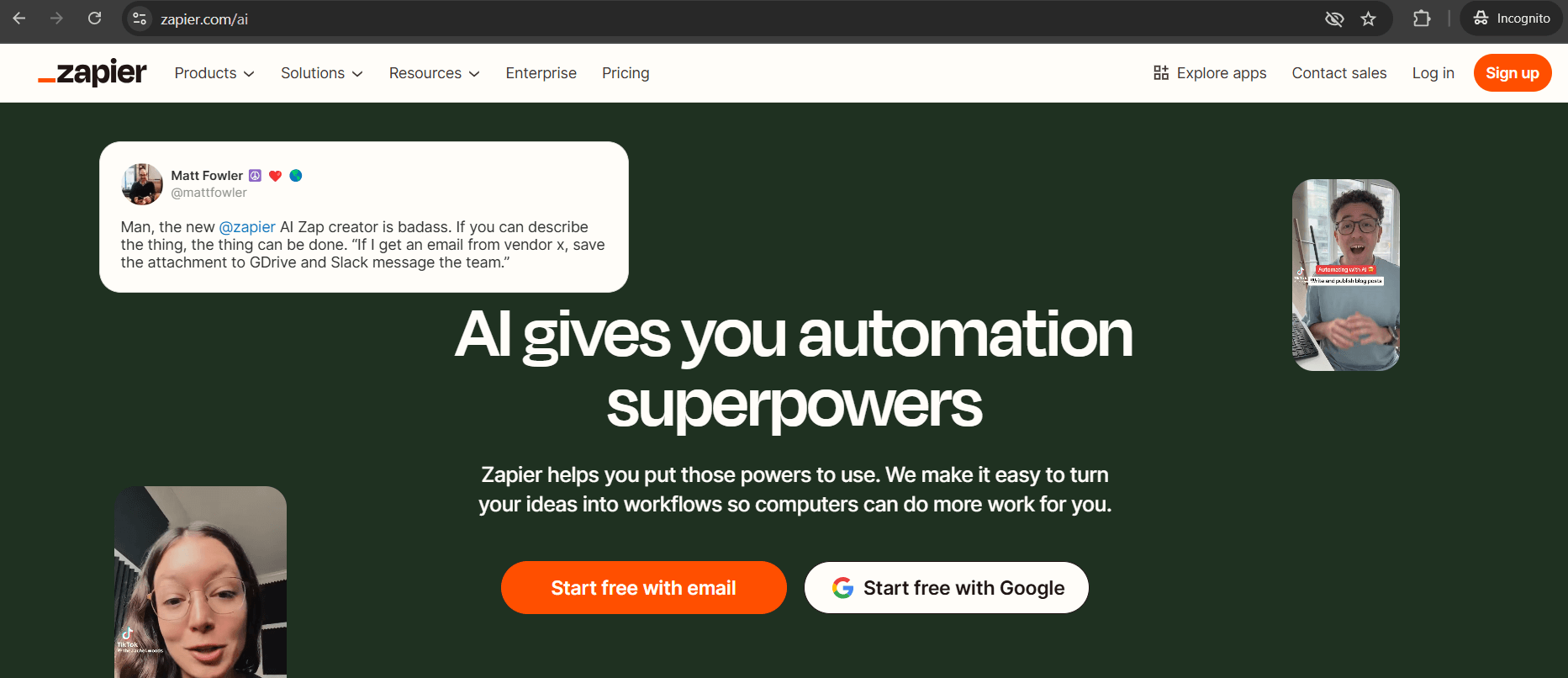 Zapier is an AI-powered tool that streamlines operations through custom workflows outside the usual scope of tool integrations.