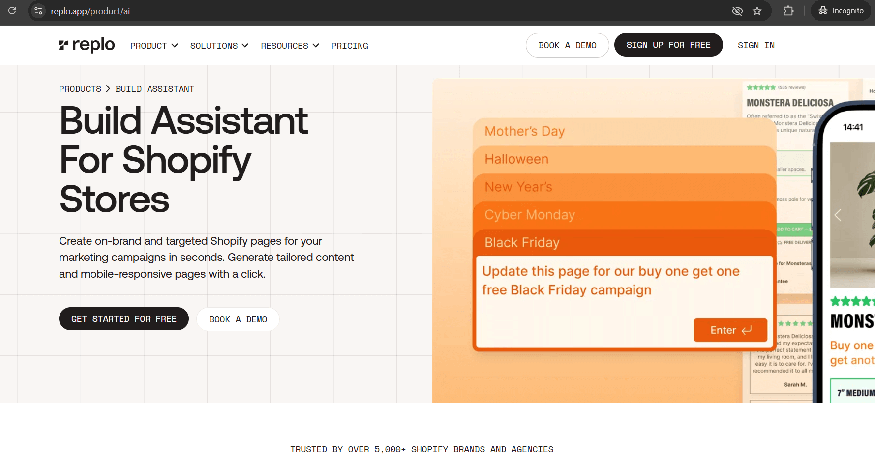 Replo is an AI-enabled landing page builder that helps you create on-brand Shopify pages for marketing campaigns.
