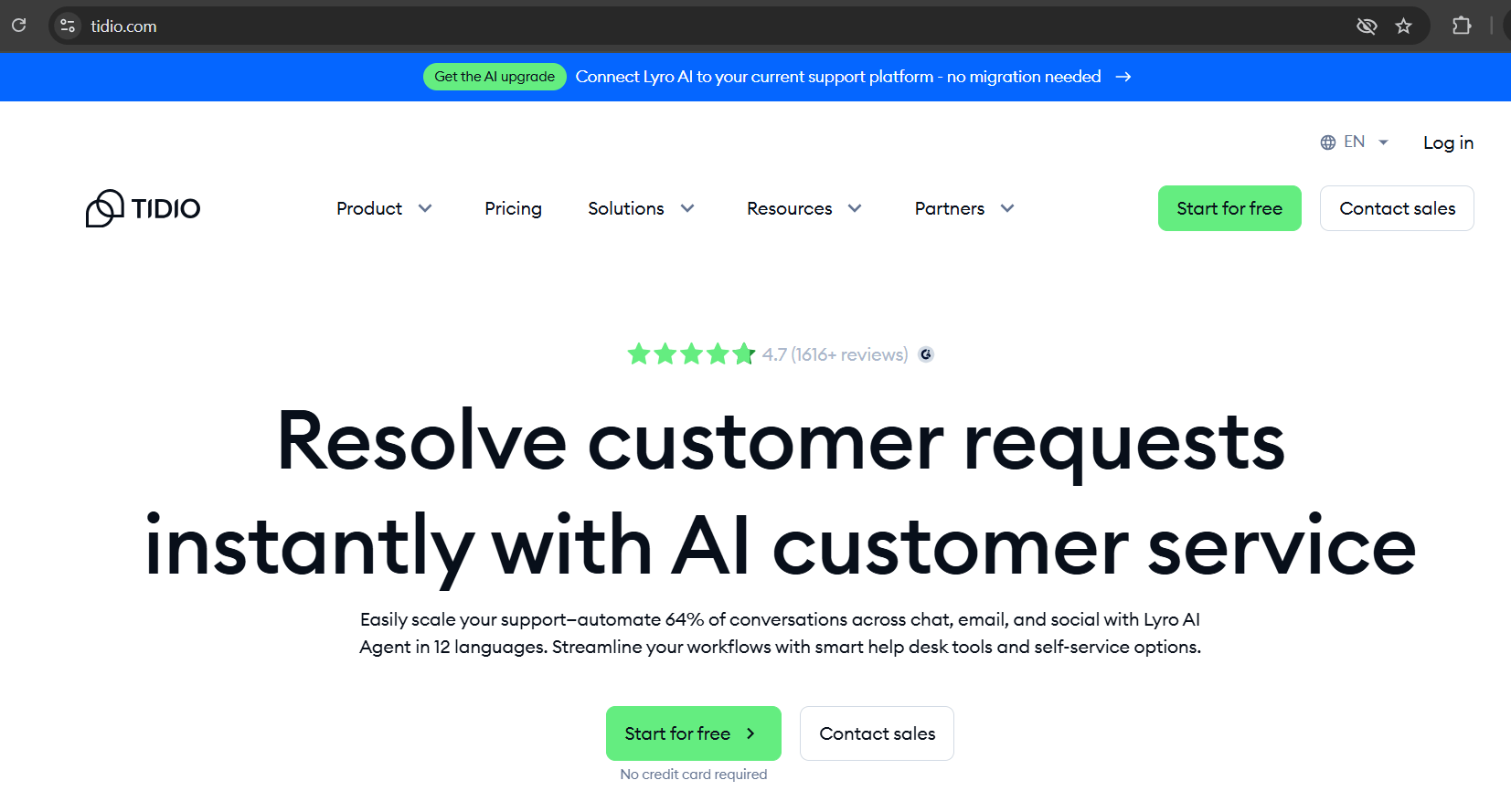 Tidio is a chatbot tool that takes your customer service game to the next level through AI-agent live chats.