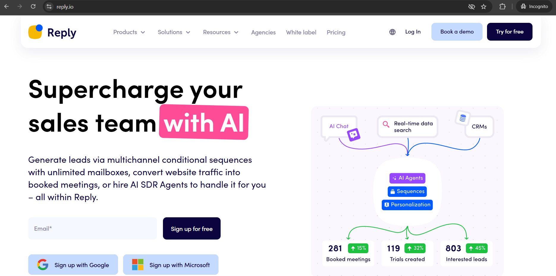 Reply is an AI-based sales engagement platform that lets you scale multi-channel outreach capabilities, including phone, SMS, social, and email marketing.