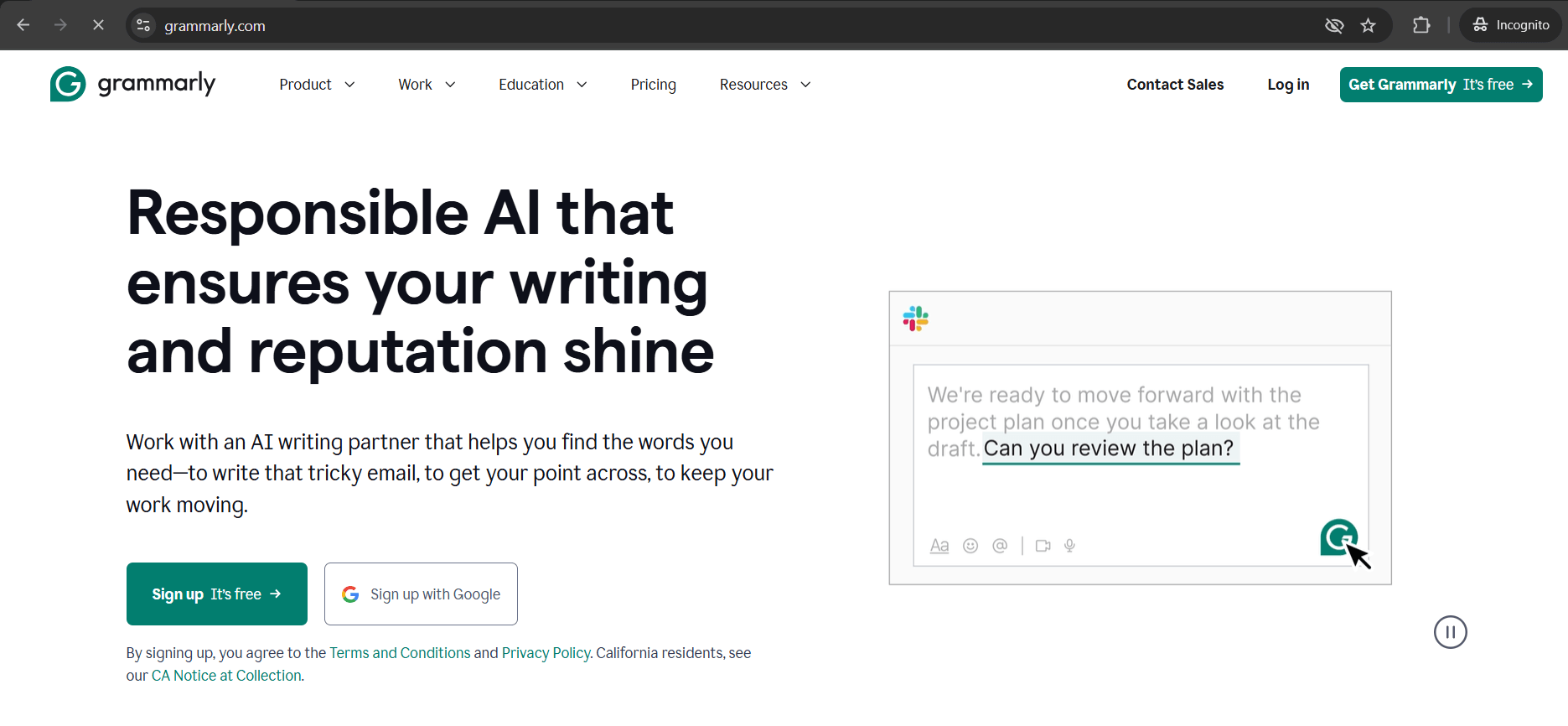 Grammarly is an AI content helper and writing assistant that enables marketers and other users to spot and fix grammar, punctuation, and tonality errors.
