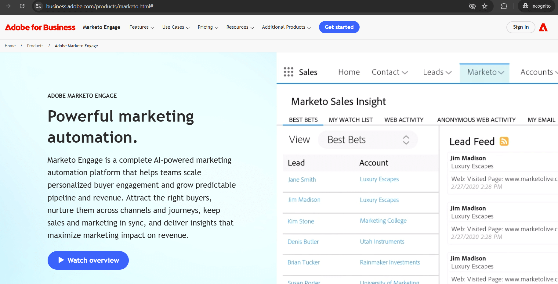 Marketo Engage is a marketing automation tool that lets teams scale personalized buyer engagement and optimize marketing ROI.