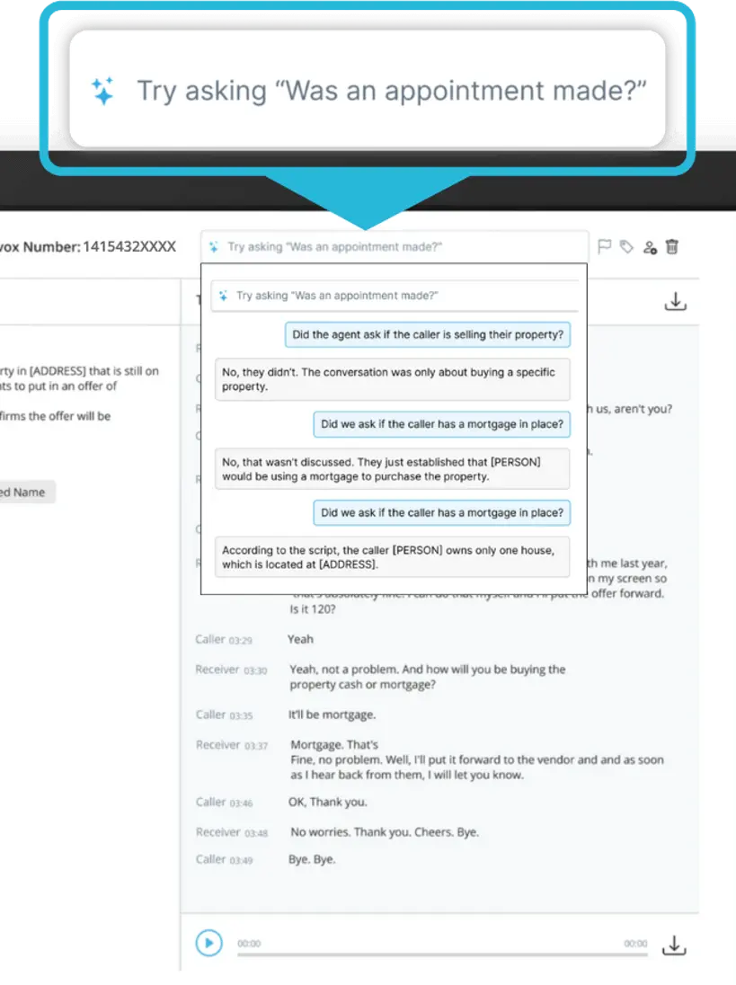 Want to know how many calls mentioned a specific product feature last month? Or how often pricing comes up in conversations that end in a sale? The natural language query capability lets you ask questions about your call data and get instant answers. This feature transforms your call recordings from passive archives into an active source of business intelligence.