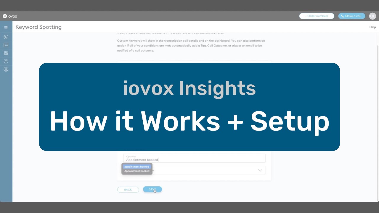 - Our team will assist in getting access to your current call recordings (inbound or outbound), or if you prefer, you can port your numbers to iovox. We will collaborate with you to define the rules and criteria that you want to track.